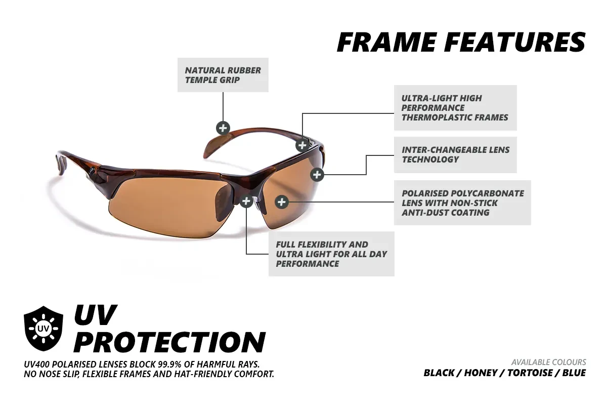 - Lens Spec: CAT 3 Injection Polarised Polycarbonate