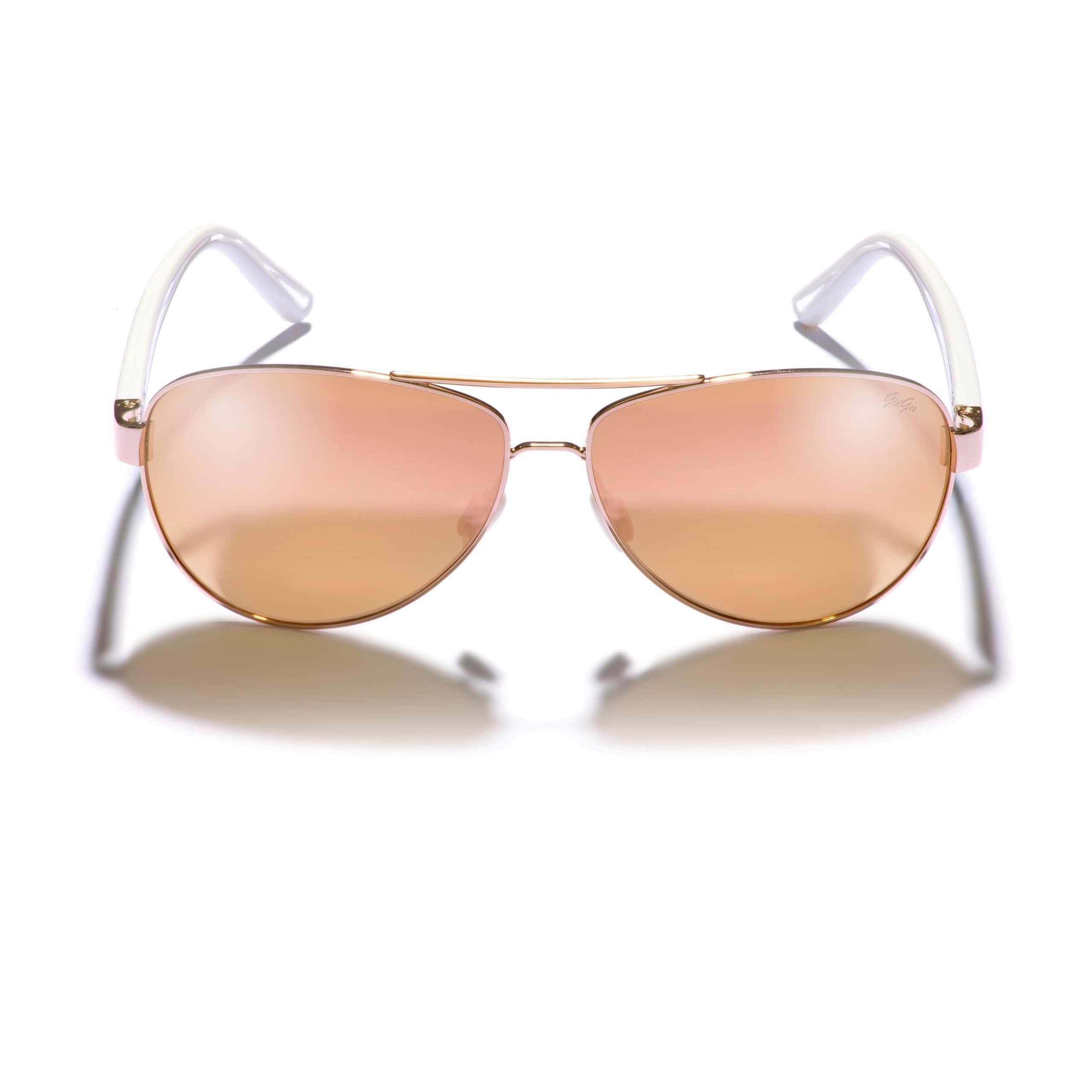 Equator Rose - is feminine fire with a modern twist. Its mirrored pink-gold lenses paired with a silver frame and