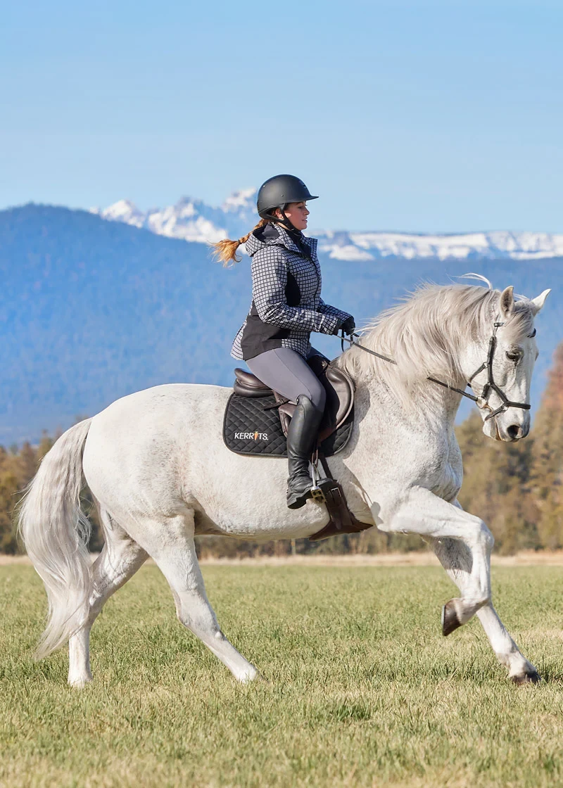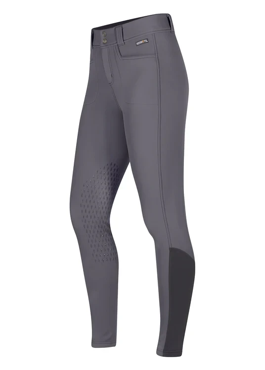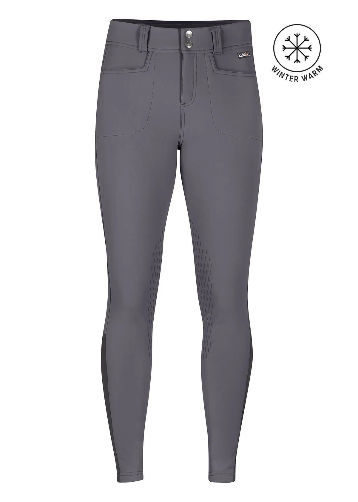 These beautifully tailored stretch-woven winter breeches provide fleece-lined insulation in a polished riding pant. This winter riding pant features thoughtfully placed pockets and a traditional front zip and belt loops add structured sophistication. While the design and lines are refined, the fabric is tenacious, finished in a wind and water-resistant exterior that sheds dirt. Kerrit Sticks™ Silicone knee patches add all-weather grip.