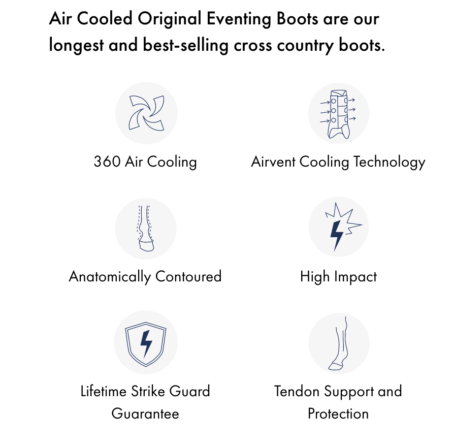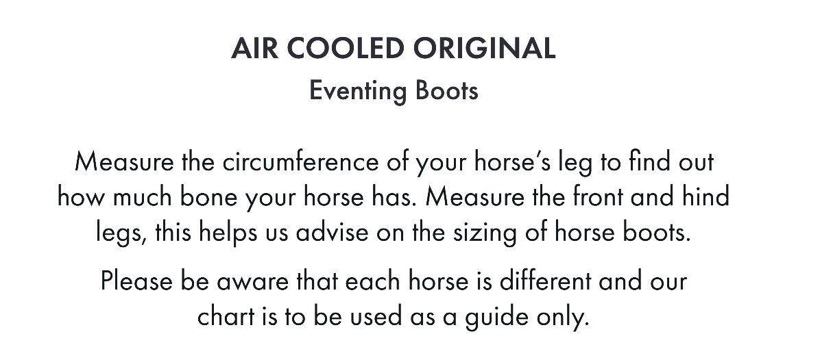 - The Air Cooled Original Eventing Boots comes inside a complimentary, reusable zip-fastened storage bag