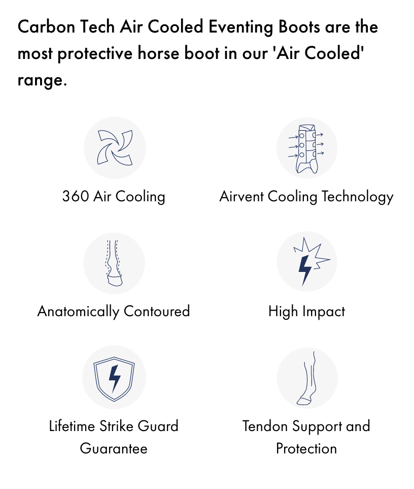 - The Carbon Tech Air Cooled Eventing Boots comes inside a complimentary, reusable zip-fastened storage bag
