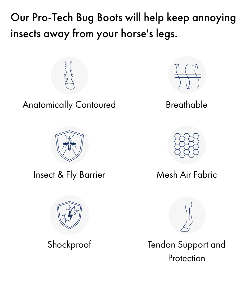 During summer months horse's legs can suffer from fly and midge bites, causing swelling and irritation. Crafted from a 3D ducted sports mesh, these fly boots allow air to flow and circulate around the horse's leg, keeping them cool on the warmest of days. Can be used on both front and hind legs.