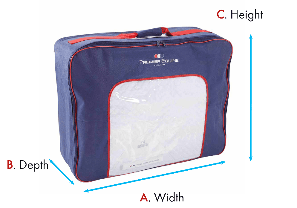 A handy rug storage bag with carry handle and printed labels to write your name, your horses name and the contents of the bag.