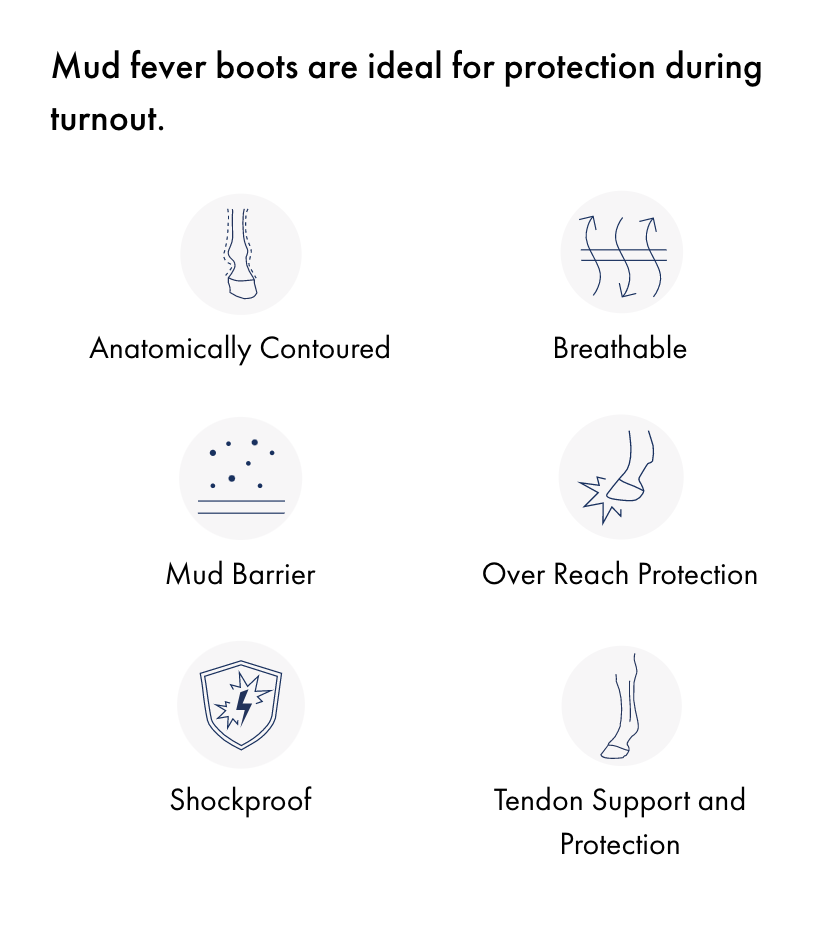 These advanced high-cut mud fever boots are made with Air-Tech ventilated neoprene for maximum breathability. Anatomically shaped to provide superior comfort for your horse whilst supporting the cannon bone and soft tissues. Fatigue is reduced in the tendon, fetlock, ligaments and suspensory. The boots cover the whole of the lower leg and pastern area, making them great for use as a preventative measure against mud fever and chills. Suitable for year-round use in paddocks. Can be used on both front and hind legs.