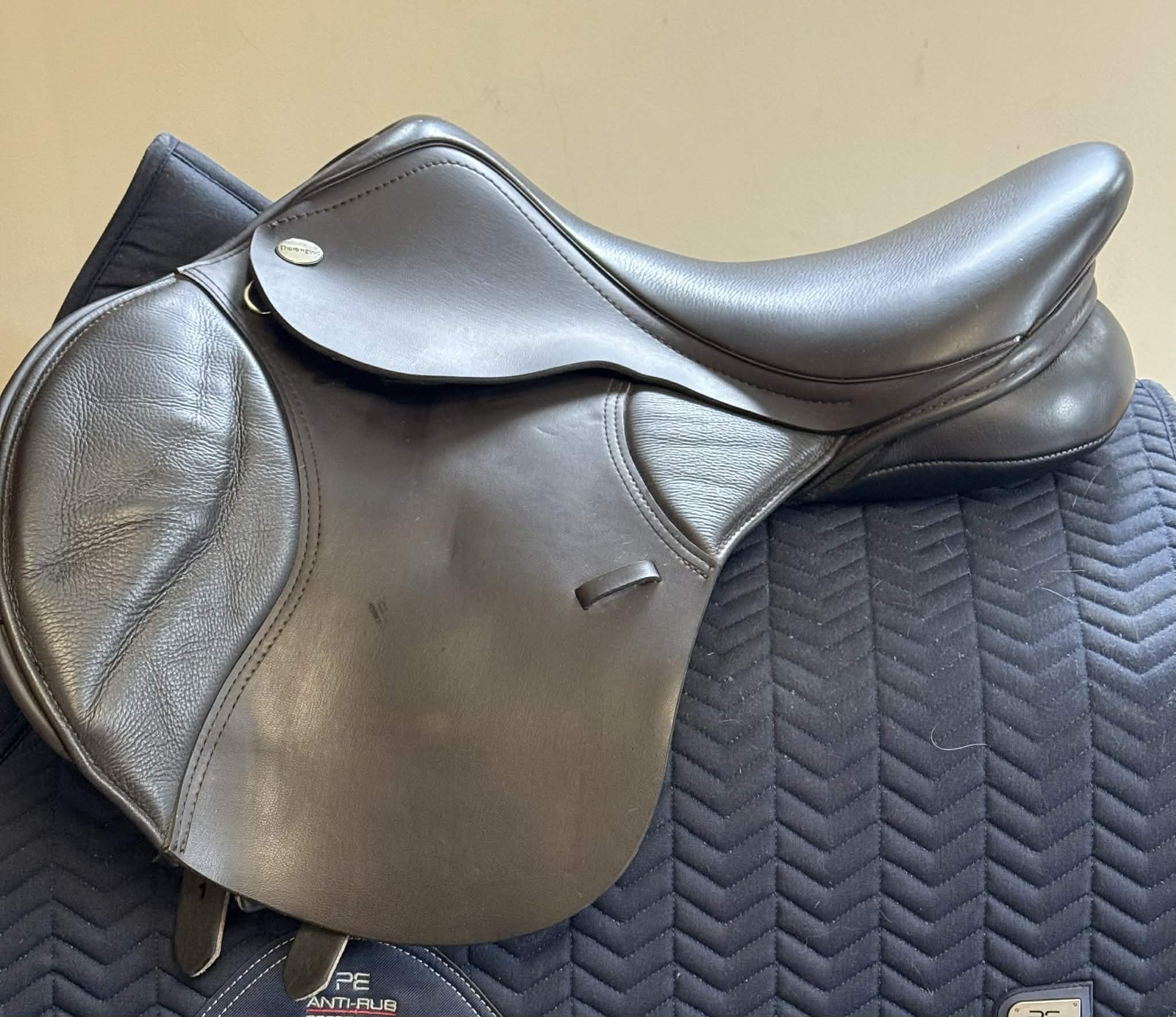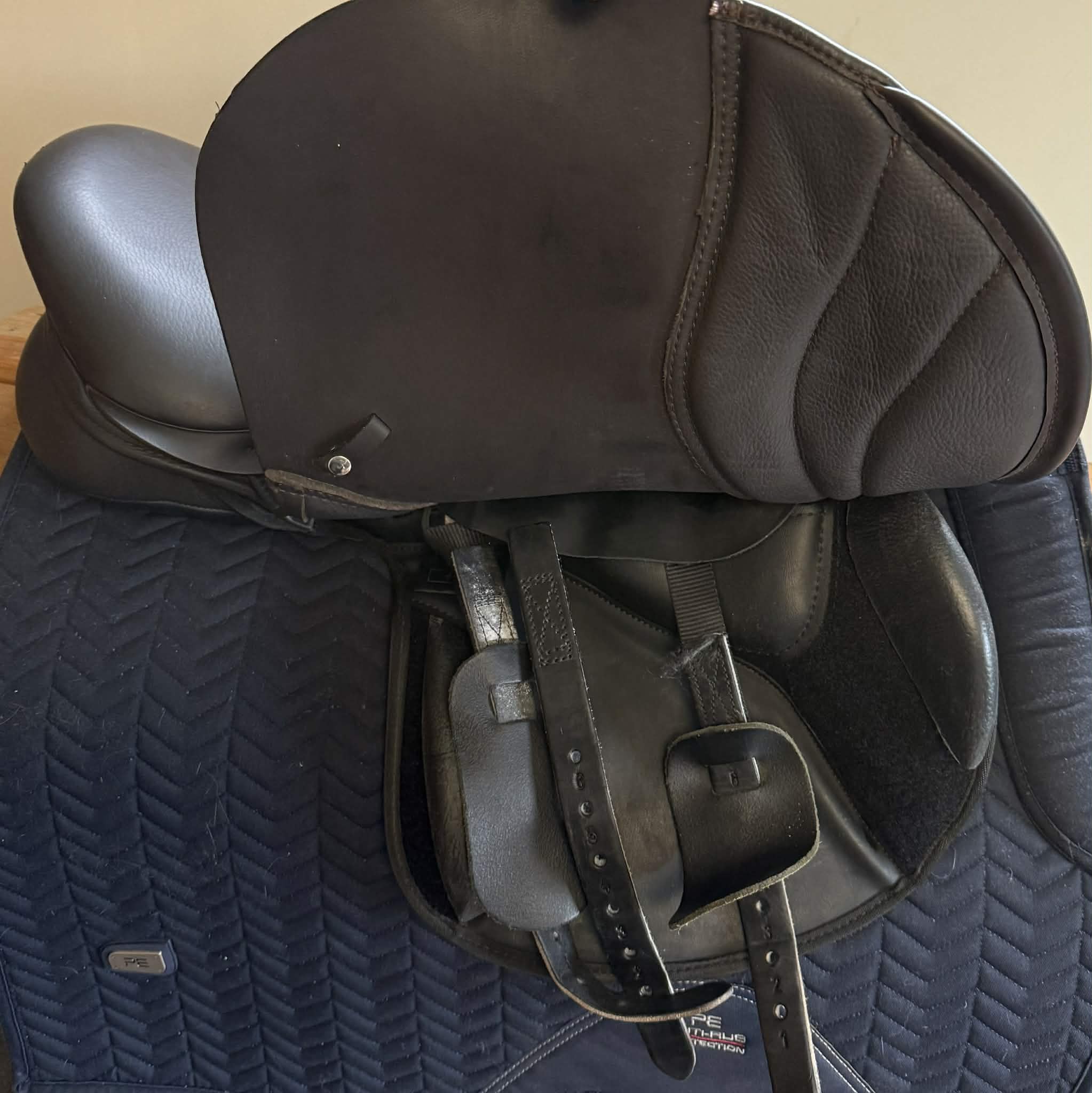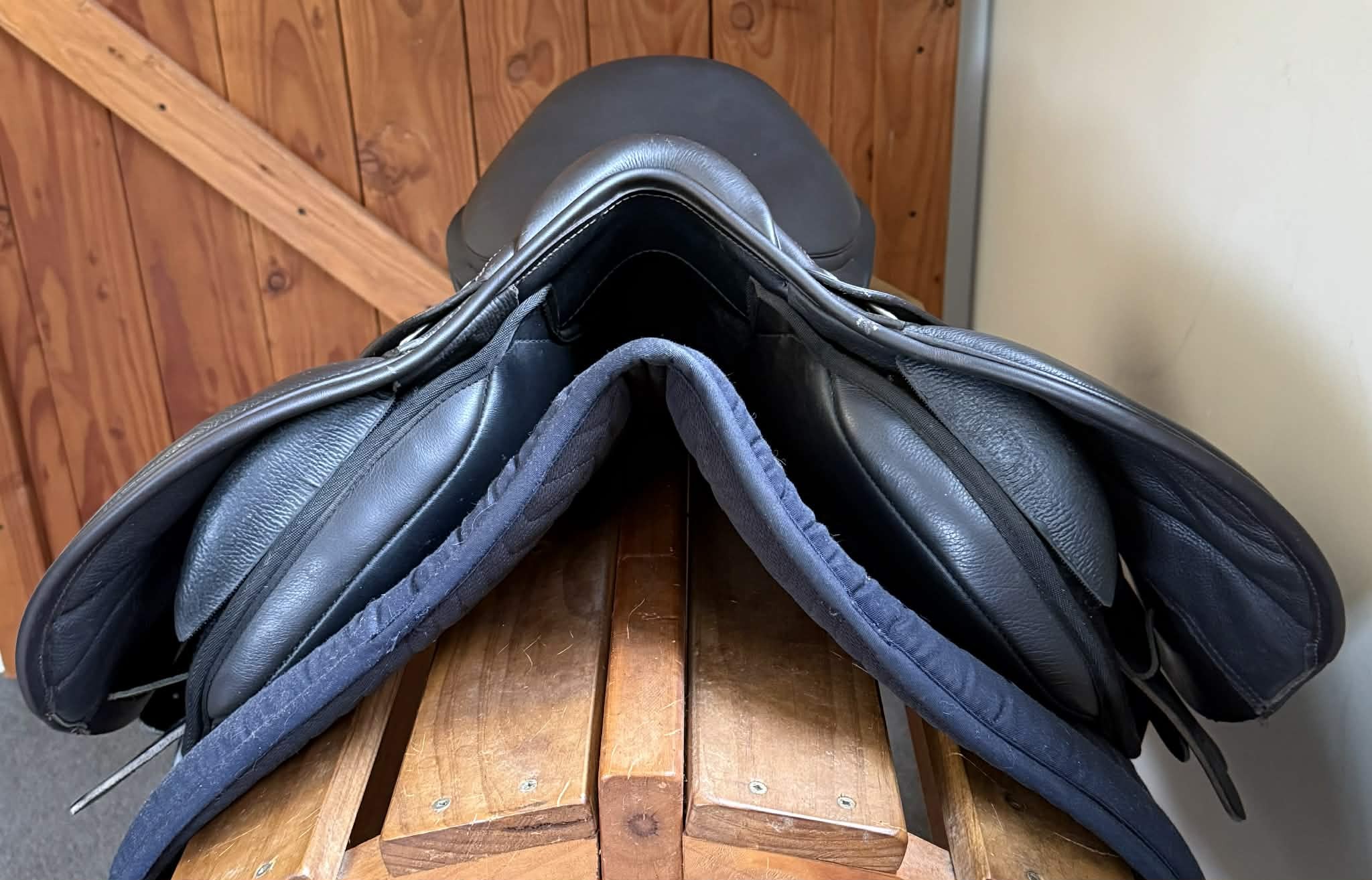 The saddle features broad, wool flocked panels and girthing options to maximise contact and saddle stability, while the quality leather seat and knee pads give the feel of riding on an all leather saddle