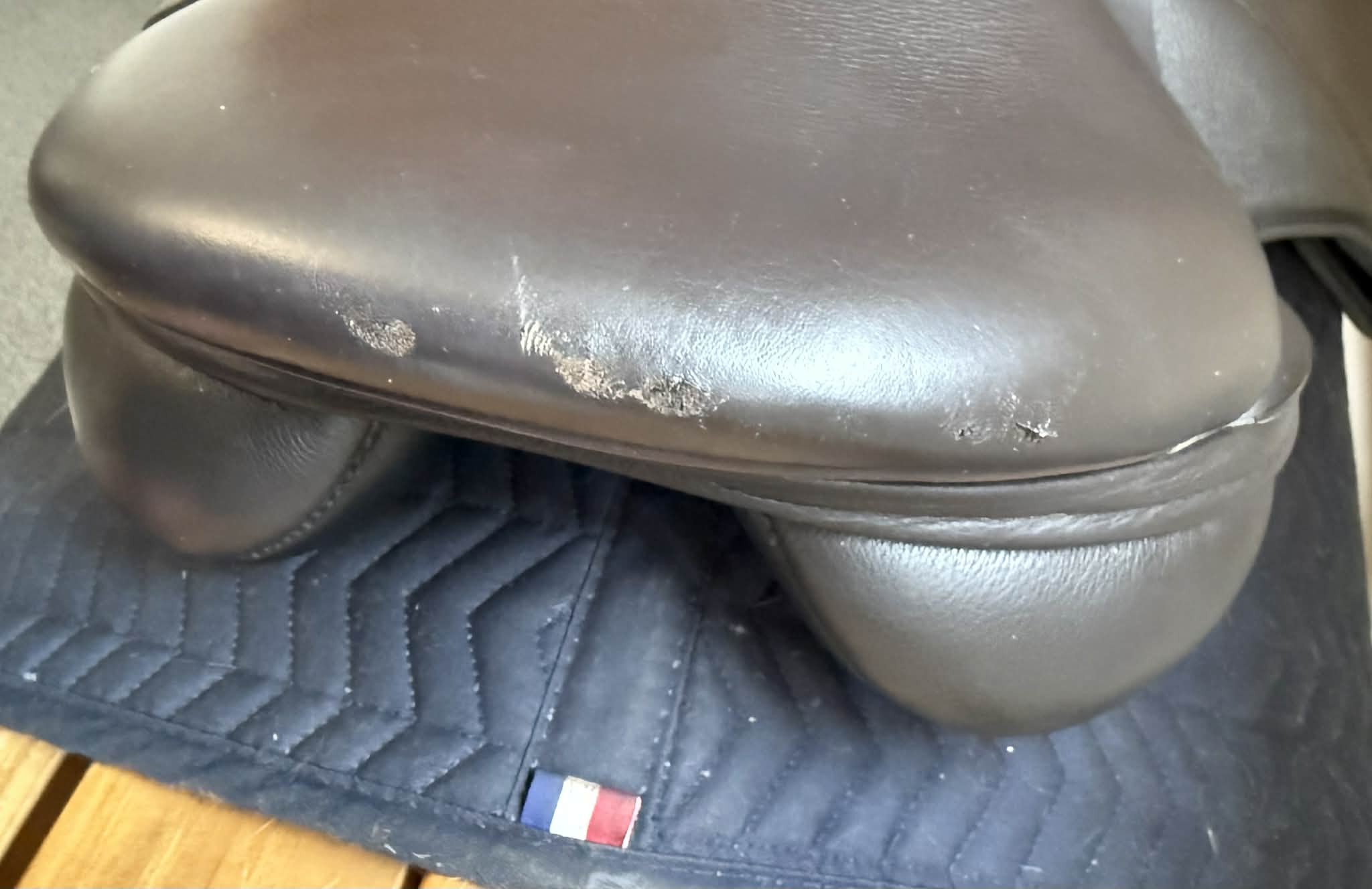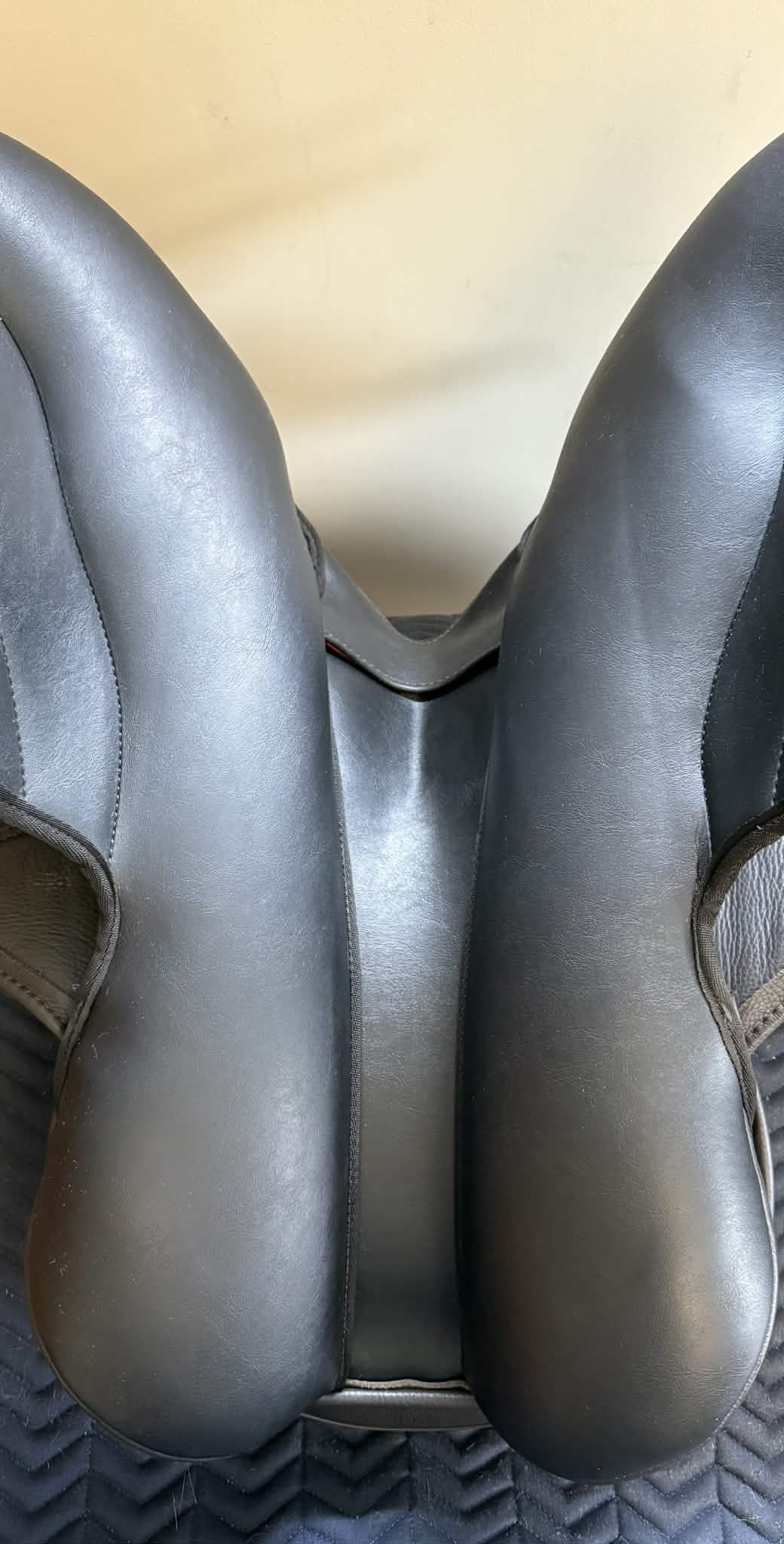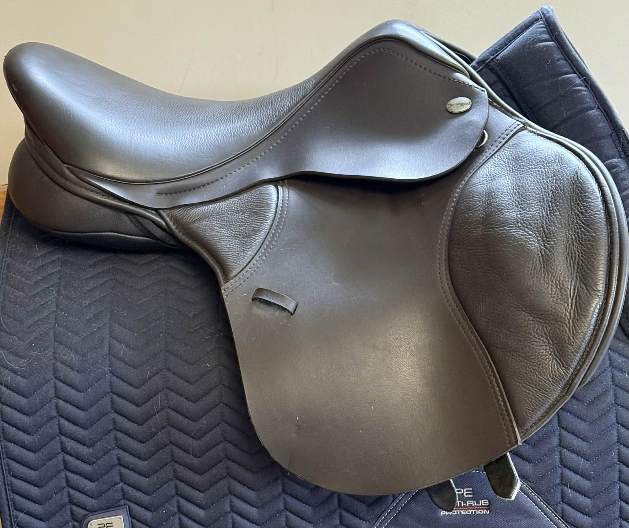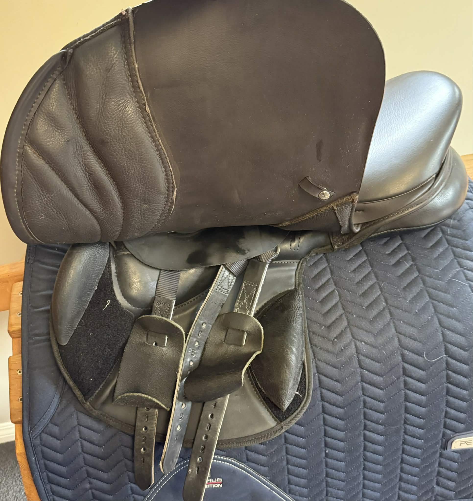 The saddle features broad, wool flocked panels and girthing options to maximise contact and saddle stability, while the quality leather seat and knee pads give the feel of riding on an all leather saddle