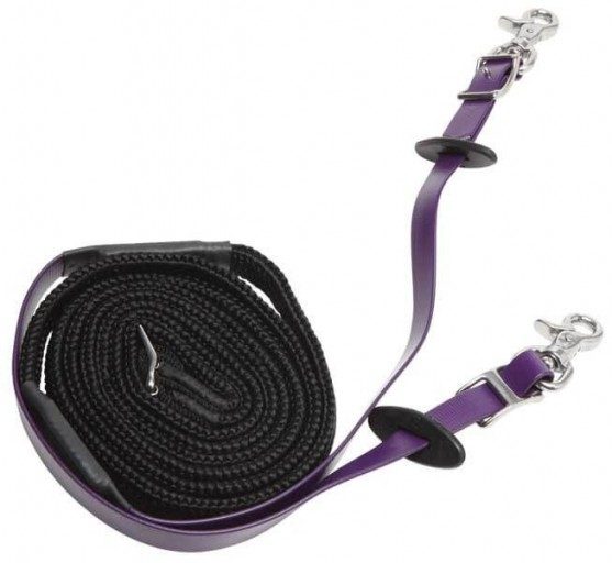 These reins are made from 19mm webbing and feature lighweight, yet strong stainless steel rein snaps for quick and easy fitting/removal. The grips are made from woven polyester so they are strong, yet soft on the hands.