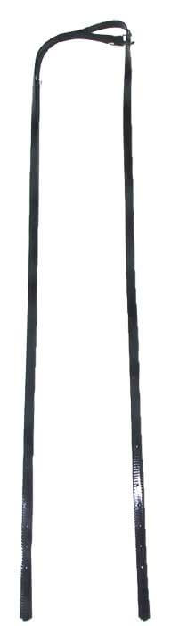 The Middle Carry Strap (or Hanger) sits over the horse's back. It is generally buckled to the uptugs on the rear of the foreleg hopples, but can also be used on the front uptugs of the rear hopples, depending on the trainer's preferred configuration.