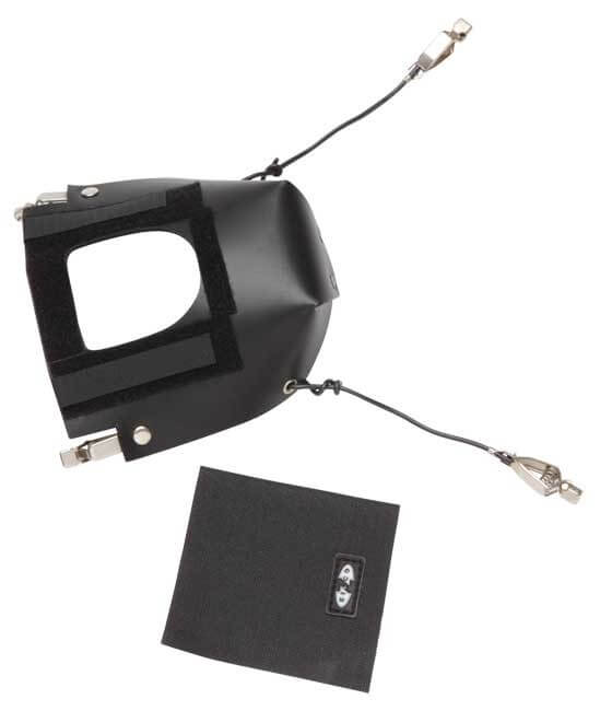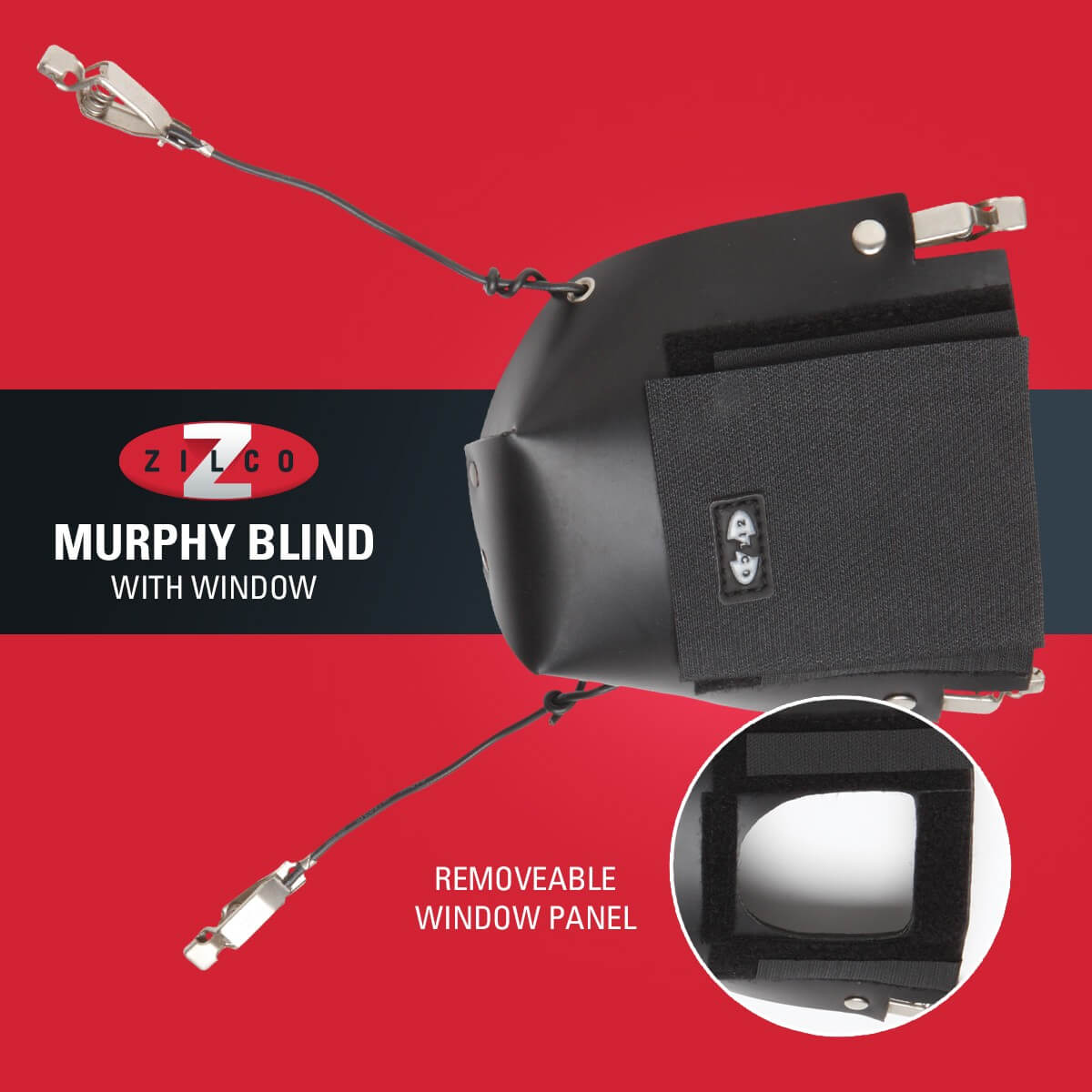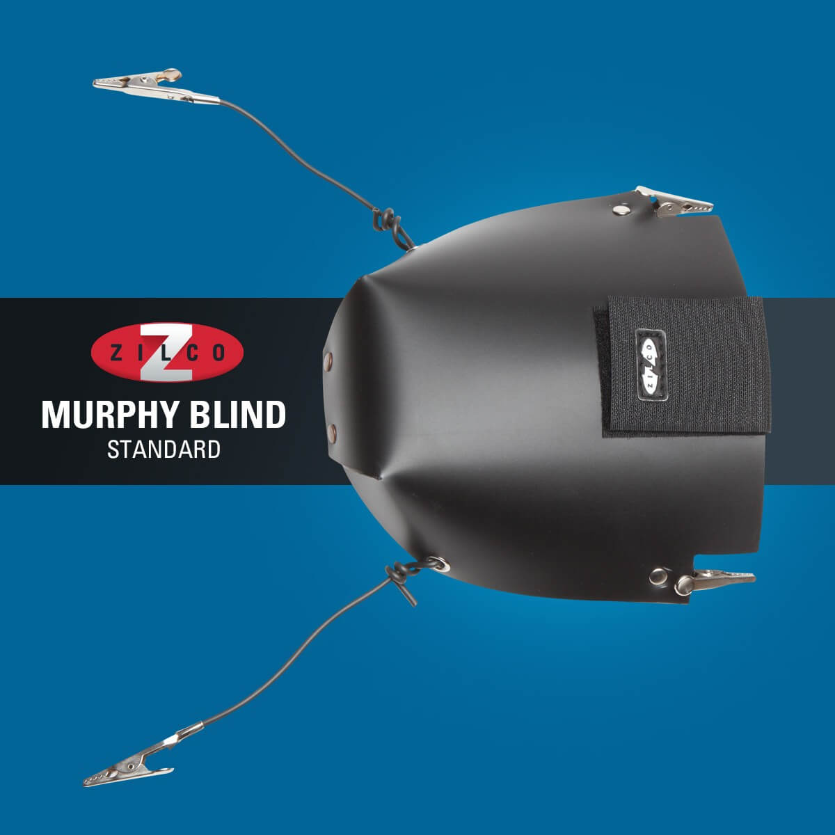 The Murphy Blind is for horses that turn their heads to one side while racing. The cup is placed over the forward facing eye, thus forcing it to turn it's head back to the centre. It attaches to the bridle cheek with touch tape, and has two alligator clips to help hold it in the correct position.