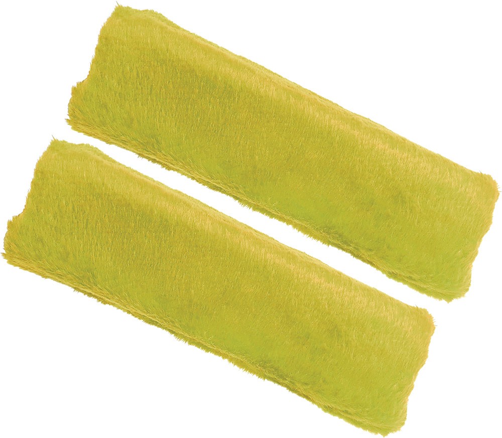 Soft synthetic fleece, that fits neatly onto the cheek straps of the bridle to form a shadow roll. This keeps the horse's vision focussed forward and away from any shadows on either side. Often used in training young or nervous horses.
