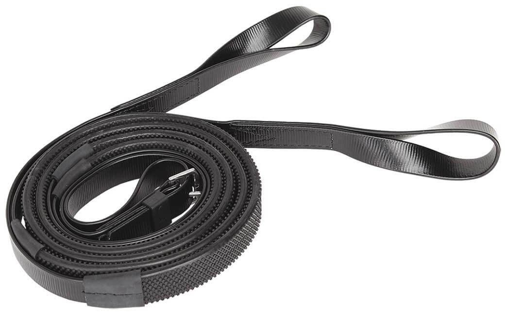 Zilco race and exercise reins are made from woven webbing, covered with a co-polymer, making them strong yet easy to maintain. This material retains flexibility over a large temperature range and is available in a wide range of colours to suit most stable colour schemes.