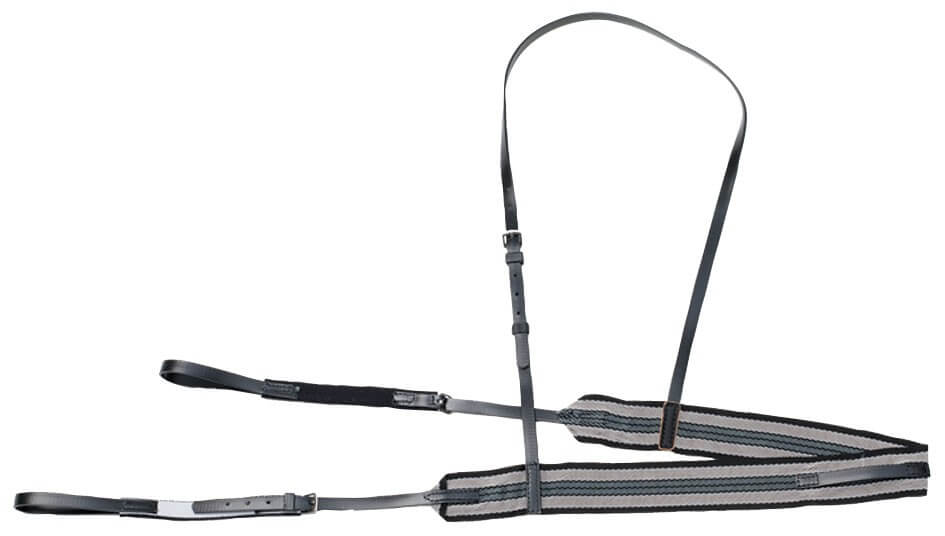 This model is made from a lightweight polyproylene with elastic inserts at the girth keepers. It includes a martingale keeper at the front. Weighs approx 160gm.