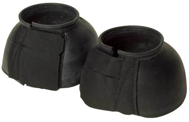 Often referred to as "overreach" boots. Commonly used in showjumping as they prevent the hind toe from striking the heels of the foreleg - which occurs most frequently when jumping out of heavygoing ground.