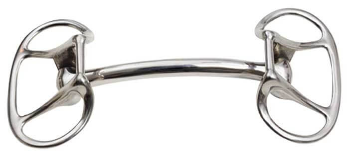 Stainless Steel. Sometimes referred to as a "Cage" bit. The side plates or "cages" apply pressure to the sides of the horse's mouth to increase control for the driver against a horse who is lugging.