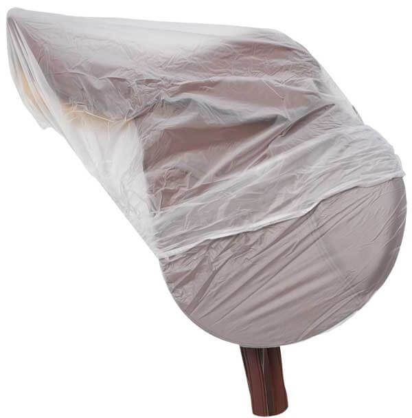 Made from semi-transparant plastic, this saddle cover is suitable for protecting your saddle from dust and scratches when not in use.
