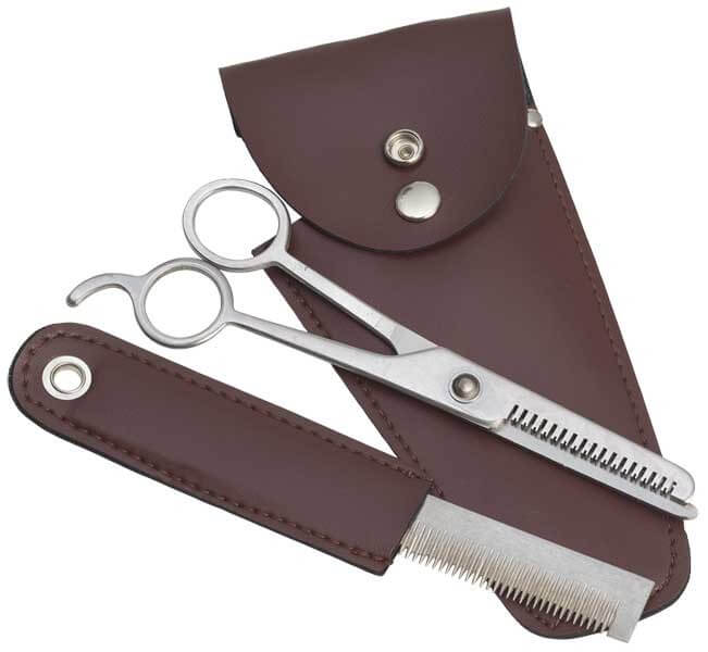 Thinning scissors and stripping comb in a handy pouch. Leaves the mane and tail with a natural line.